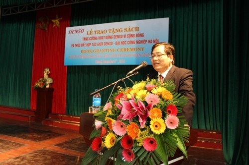 Phát biểu tại lễ trao tặng sách, TS. Trần Đức Quý - Hiệu trưởng Nhà trường cảm ơn sự quan tâm của lãnh đạo Denso Việt Nam, đã có những hỗ trợ thiết thực để giúp sinh viên của trường có thêm nhiều điều kiện học tập tốt. Điều này cũng đòi hỏi Nhà trường phải quyết tâm cao trong việc thực hiện tốt hơn nữa nhiệm vụ đào tạo, phát triển nguồn nhân lực có chất lượng, đáp ứng tốt nhất yêu cầu từ phía doanh nghiệp.
