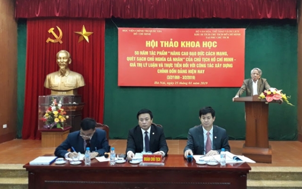 (CTSV) Ngày 25 - 1- 2019, tại Hà Nội, Học viện Chính trị quốc gia Hồ Chí Minh phối hợp với Khu Di tích Chủ tịch Hồ Chí Minh tại Phủ Chủ tịch tổ chức Hội thảo khoa học: “50 năm tác phẩm Nâng cao đạo đức cách mạng, quét sạch chủ nghĩa cá nhân của Chủ tịch Hồ Chí Minh - Giá trị lý luận và thực tiễn đối với công tác xây dựng Đảng hiện nay”. Tạp chí Lý luận chính trị trân trọng đăng bài tham luận của đồng chí Mai Văn Chính, Ủy viên Trung ương Đảng, Phó Trưởng Ban Tổ chức Trung ương.