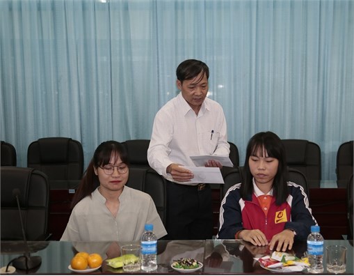 PGS.TS.Phạm Văn Bổng - Phó Hiệu trưởng, đại diện cho Ban Giám hiệu Nhà trường thăm hỏi, động viên các em học sinh, sinh viên là người khuyết tật đang học tập tại trường, lắng nghe các em chia sẻ về học tập, về cuộc sống và những dự định trong tương lai.